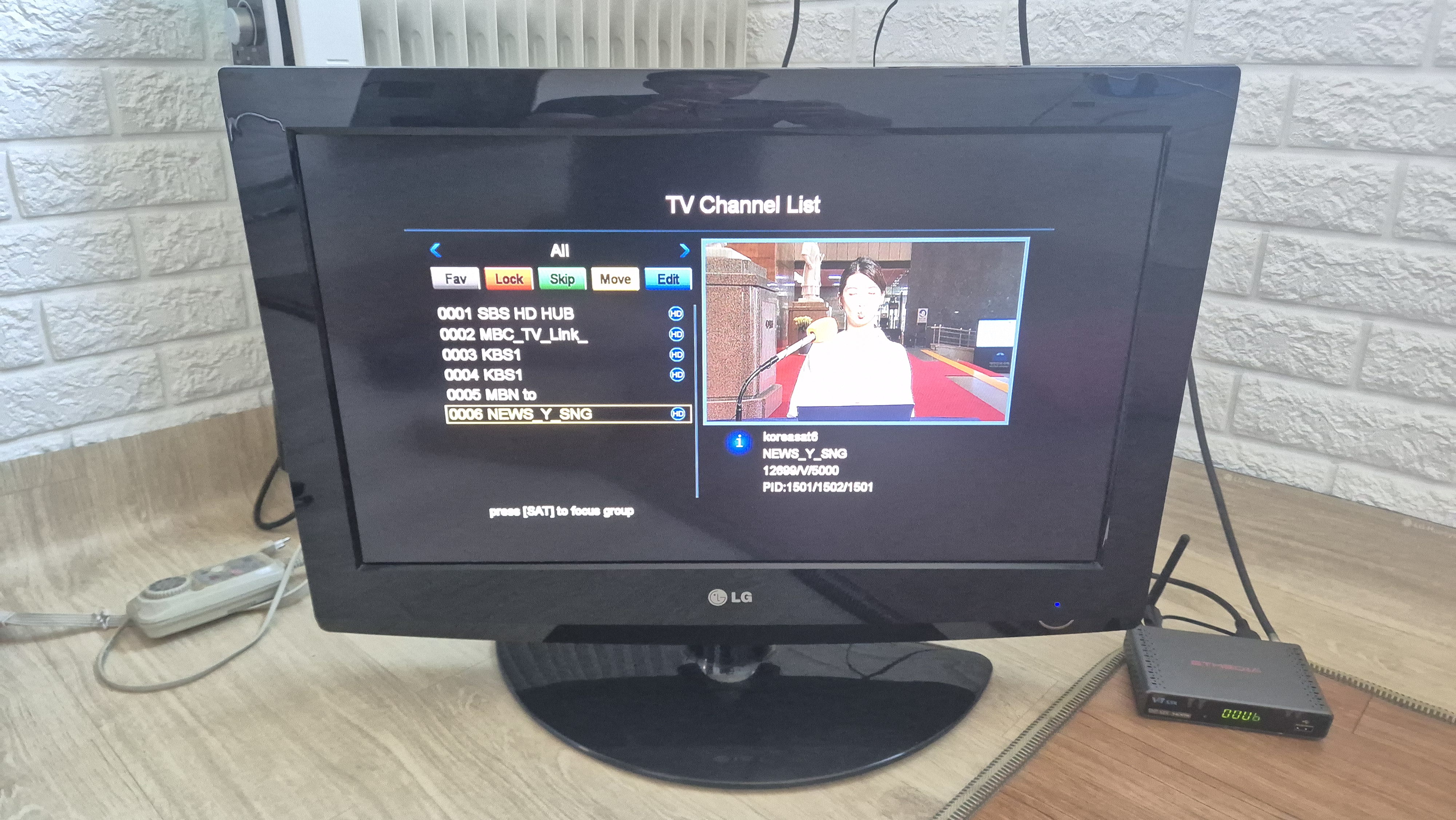 새로이 위성수신기를 설정하여 이번에는 KBS1TV, MBC, SBS, MBM, YTN 5개 방송이 수신이 되었고 KBS2 TV가 여전히 수신되지 않는다