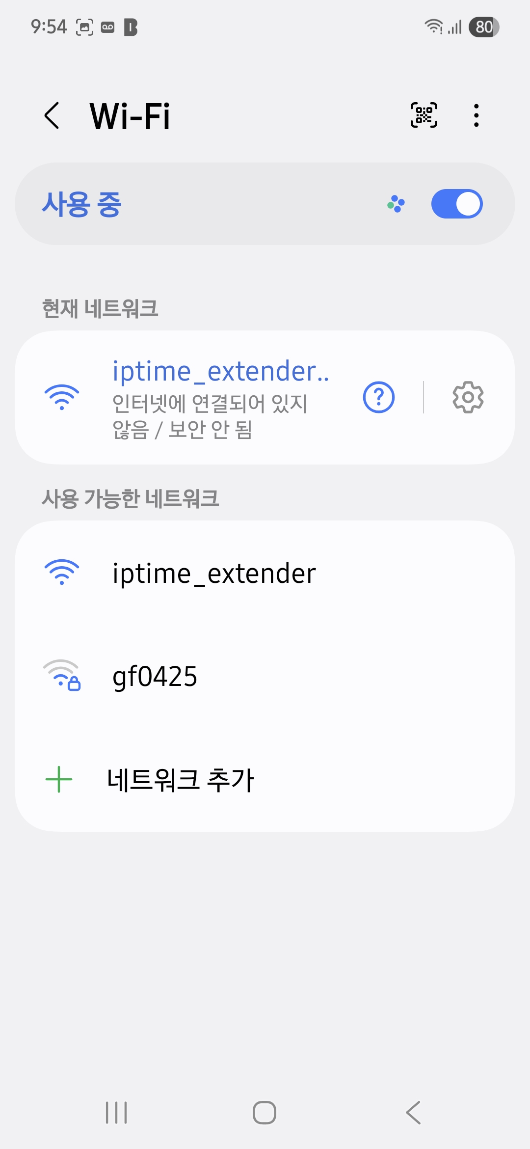주변의 와이파이 신호가 뜨고 확장할 와이파이를 터치